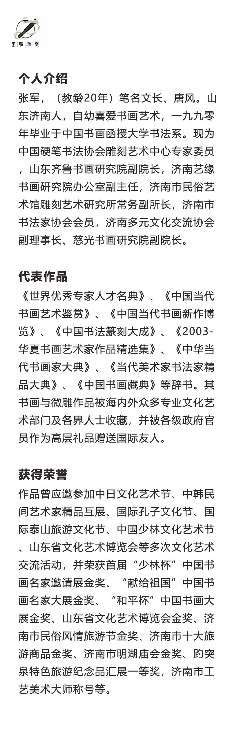 所授科目:书法培训