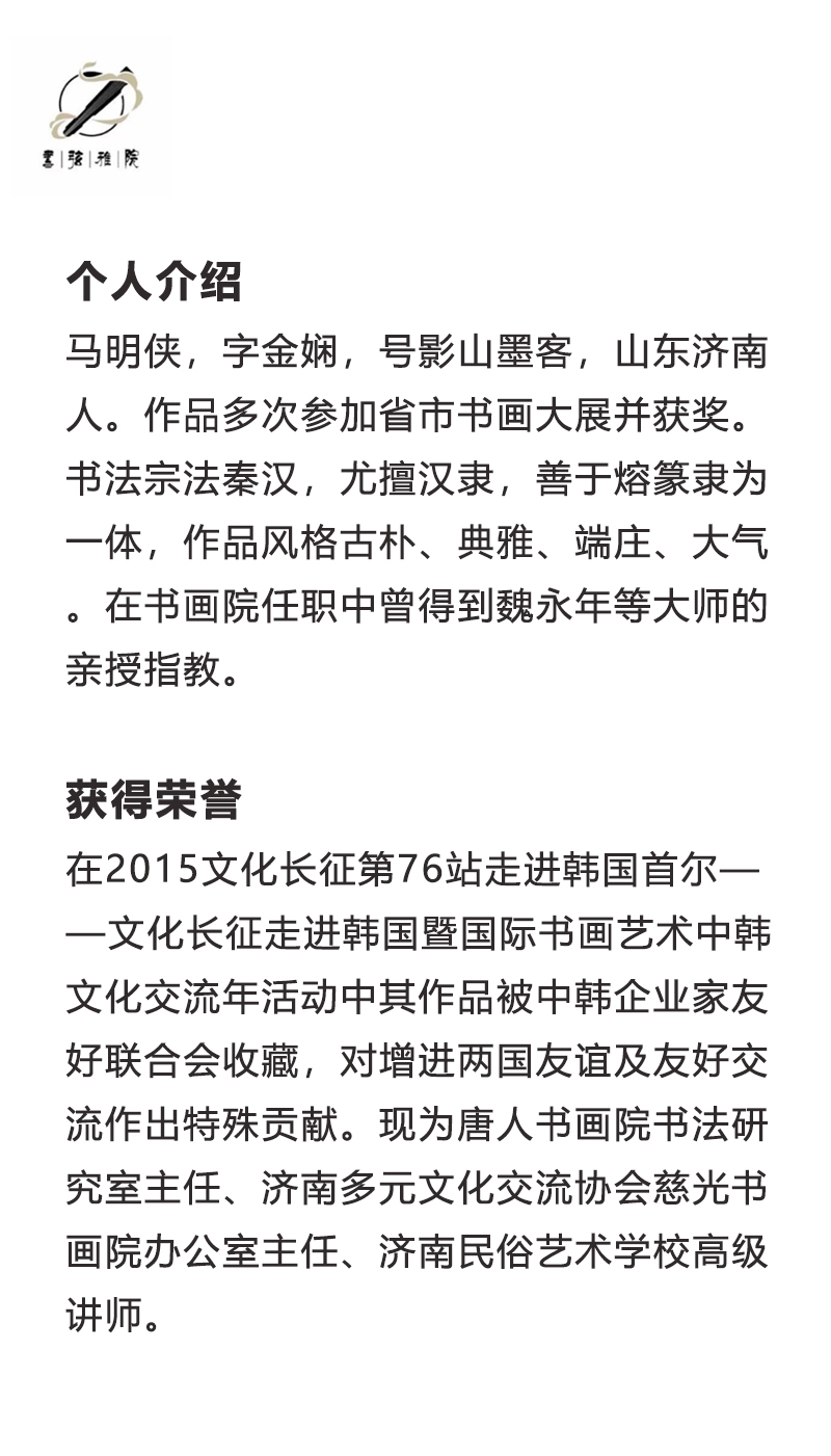 所授科目:书法培训